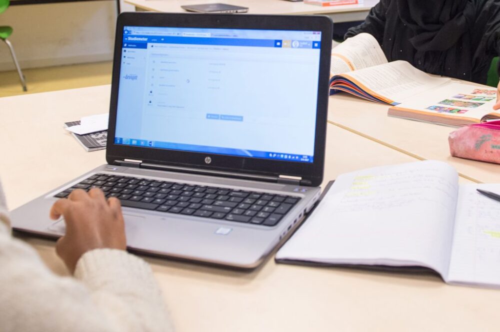Wij werken op school met leerpleinen. Als je leerplein hebt, werk je op niveau met kinderen die hetzelfde niveau hebben. Dat is fijn en je krijgt veel aandacht, want je zit in kleine klassen. Je begrijpt elkaar sneller, omdat je op hetzelfde niveau zit. Je pakt een boek of een laptop, maar meestal werk je op de laptop. Je maakt eerst een instaptoets. Als die toets onder de 8 is, dan ga je oefeningen maken. Als het boven de 8 is, ga je verder met de volgende oefentoets. Zo weet je precies wat je al kunt en wat je nog meer moet oefenen.