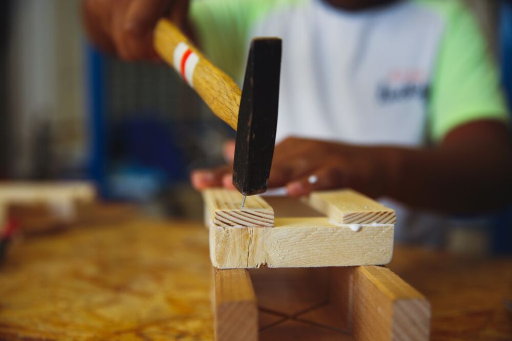 Bij techniek leer je in het eerste jaar wat gereedschap is en hoe je moet meten. Je gaat dan ook aan de slag met leuke dingen maken, zoals fotolijstjes, een grote sleutel en een vogelhuisje. Als je klaar bent met je opdracht, dan mag je overleggen met de techniekmeester en kan je zelf iets verzinnen om te maken. Ik heb met een vriendin een make-up kistje gemaakt en dat was heel erg leuk.