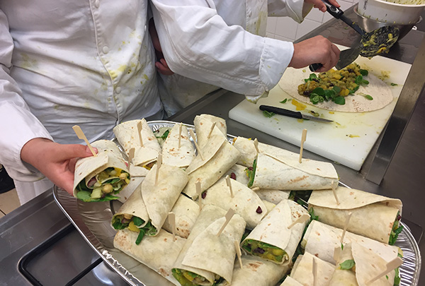 Ik vind horeca heel leuk op school en Dienstverlening & Welzijn (D&W). Nu was ik in de kookles bezig met het maken van wraps. Samen met een vriendin en andere leerlingen moeten we voor 200 mensen wraps maken. Die wraps zijn besteld door een bedrijf en ze moeten vandaag af. Het leukst van het koken vind ik het kliederen met eten en pannenkoeken bakken en ze dan omhoog gooien.